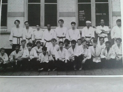 Die „berühmte“ Kampfsportschule von GM Meijers (obere Reihe ganz rechts) und GM Paatje (obere Reihe dritter von rechts) mit GM Jan Hagen als Jugendlicher (untere Reihe siebter von links) in den 60er Jahren (Privatbesitz Jan Hagen)